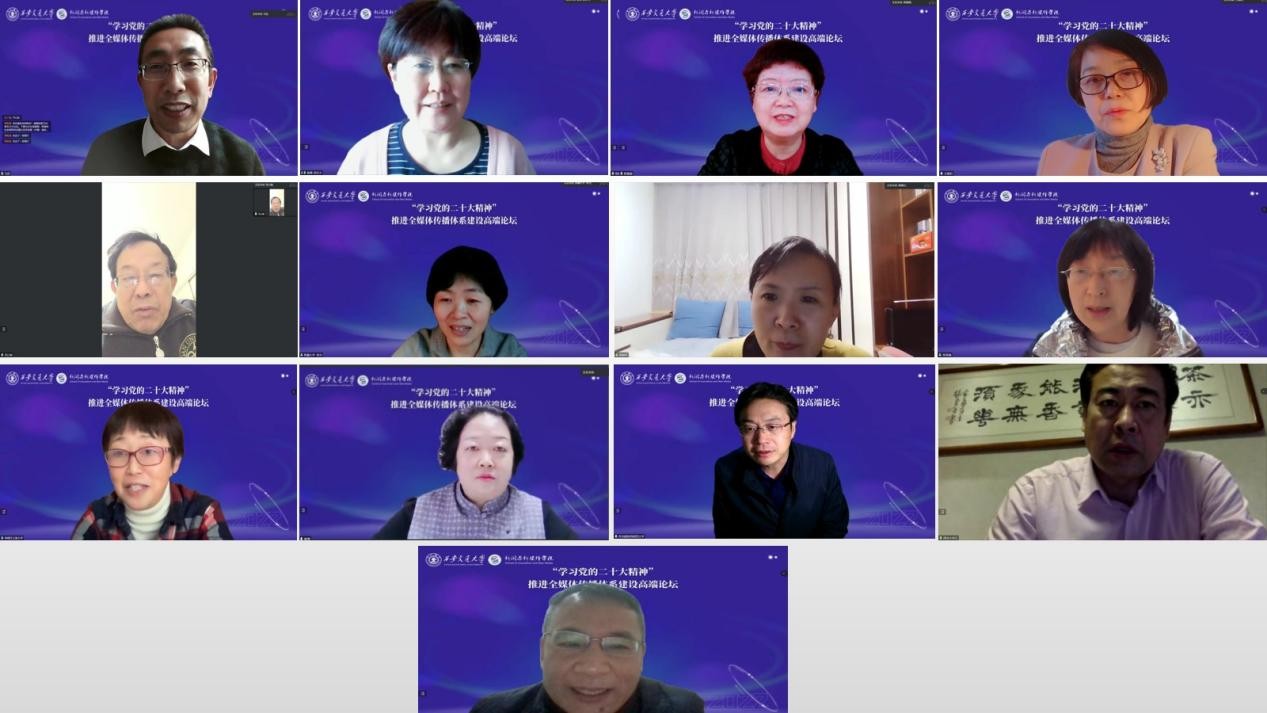 主办的“学习党的二十大精神,推进全媒体传播体系建设高端论坛”成功举行。来自全国60多所重点新闻传播学院的百余名知名学者、龙头企业和知名媒体代表相聚云端,围绕“加强全媒体传播体系建设”发表真知灼见,旨在凸显新时代媒体人使命担当,更好推进新型主流媒体建设,探讨全媒体传播人才培养模式创新,助力新闻传播学科建设高质量发展。