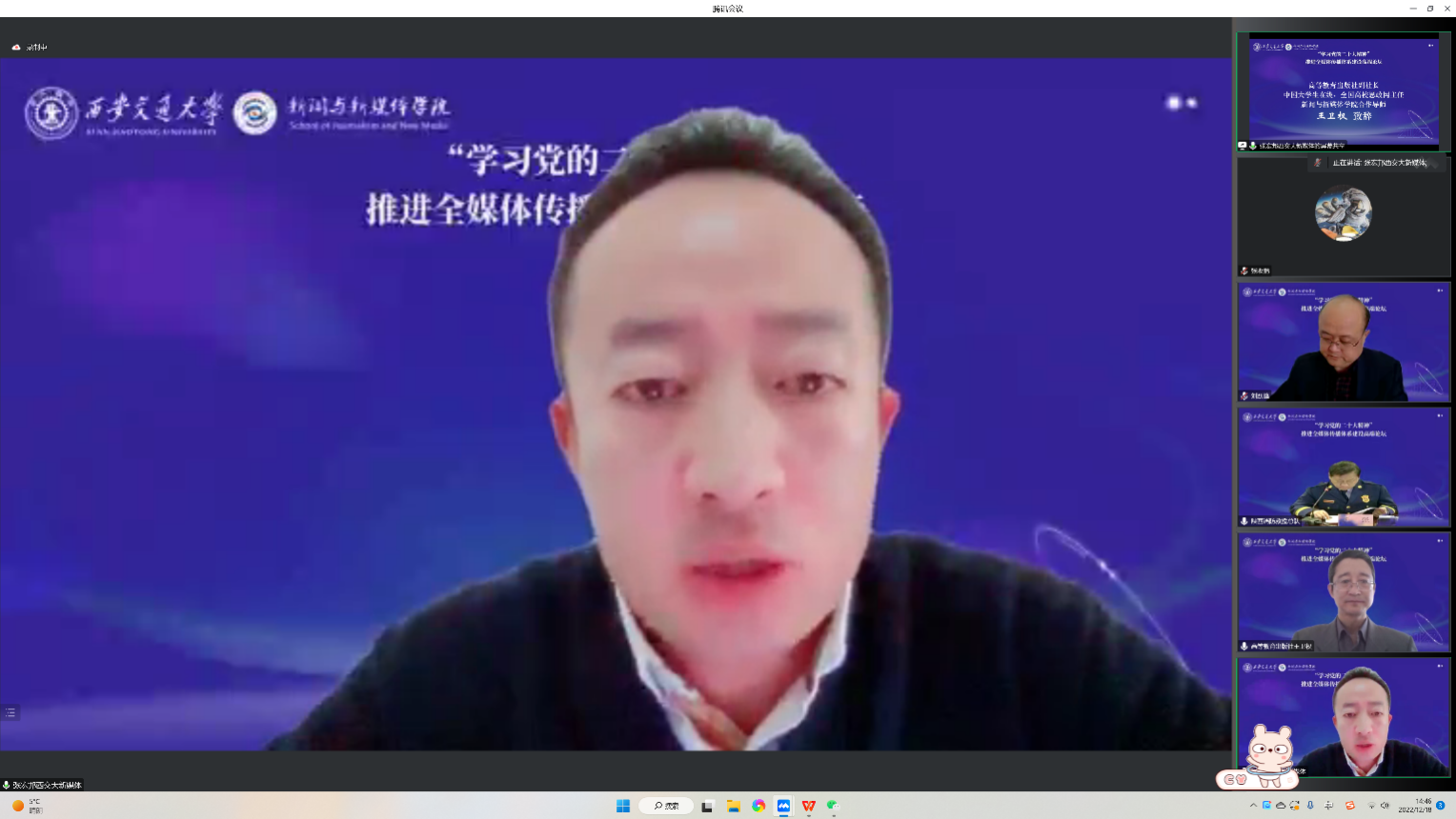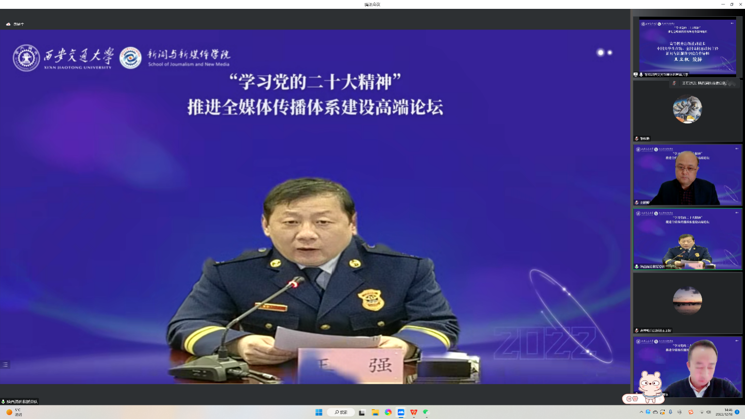 王卫权副社长在致辞中回顾了二十大报告中对科教事业的重要表述,指出深入实施科教兴国、人才强国、创新驱动战略已成为时代发展中的重要任务。校企合作育人、产教融合、协同育人是深入贯彻落实二十大精神,培养社会主义现代化建设人才的有效举措,也是发挥西交大综合优势,推动新文科建设、推动新闻卓越人才培养的重要措施。