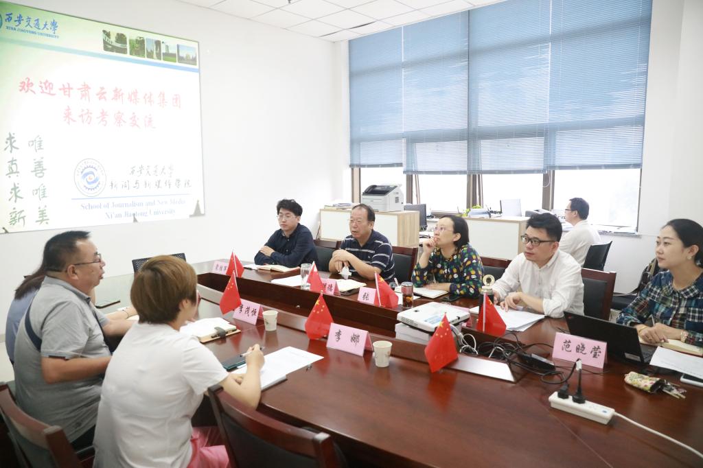 新媒体学院新媒体与网络舆情研究工作开展情况,学习陕西省网络舆情研究基地发展现状、先进理念和成功经验。新媒体学院院长李明德亲切接待,院长助理张立、新闻系主任蒙胜军、传播系副教授朱多刚、学院办公室主任范晓莹陪同。