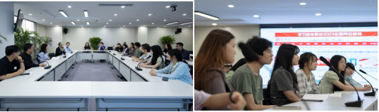 在座谈会交流环节,新媒体学院师生首先观看了陕西网围绕建党百年、乡村振兴、二十大精神宣传等主题策划制作的新闻宣传作品。随后,同学们结合参观感受与专业所学,就新闻选题策划、个人专业技能提升、假期实习实践等与陕西网三位部门负责人交流。受乡村振兴短视频作品《归雁》启发,新媒体2101班靳天阳同学说陕西网的很多新闻报道将典型人物故事置于宏大时代背景下,进行创新叙事,如《微光》摄影作品栏目记录了西安城里在各自岗位上默默耕耘的平凡的工作者。新媒体2101班钱子懿同学说《党史可以这么学》系列展现出党史教育的趣味性,《数据陕西》则用数据可视化的形式生动呈现了陕西各方面的发展进步,这些创新的优秀作品让他对主题新闻宣传有了更全面的理解。