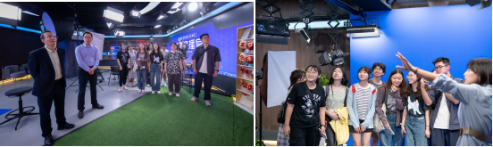 随后,新媒体学院师生走进融媒体导播间、录音间,虚拟演播室,学习视听新媒体内容生产、节目录制及网络直播的操作流程,及融合新闻生产传播的理念与实践。