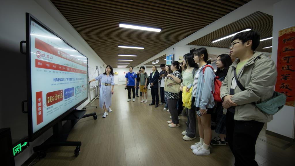 网络与新媒体专业二十多名学生在学院副书记吴锋教授,高级工程师张收鹏老师带领下,走进《当代陕西》融媒体中心参观学习,并与陕西网采编中心主任牛菲、陕西网项目中心主任高伟及陕西网视频部主任冯超进行座谈交流。