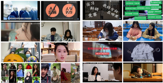 作品《AI新纪元:2050年新闻业展望》展望2050年强人工智能背景下新闻传媒业的未来发展。作品《AI是如何绘画的?》通过三维动画形象的展示了AI绘画的原理、发展历程,并反思相关的媒介伦理问题。作品《否定“否定”》通过三个小故事演绎了高度“内卷”环境下当代大学生的精神内耗问题,倡议年轻人拒绝不必要的自我否定。作品《我替你开口》灵感来自聊天机器人程序Chat GPT及网络热梗“嘴替”,以一位大学生为主角,讲述其使用AI嘴替上瘾而失去语言表达和社交能力的故事。作品《以爱之名,施以极刑》以女生关于“什么是爱情”的心理自述为线索,生动演绎女性在爱人之前先要“爱自己”,避免陷入“爱情”PUA的陷阱。作品《如果大学用直播带货的方式招生》巧妙地将网络与新媒体专业作为带货对象,用幽默的话语和创新的形式,为学校招生宣传助力。作品《千禧小番茄》借鉴热播影视作品中的片段进行情景演绎,用创新的方式和短视频的形态推广产品。作品《留学在交大》采访了多个国家的留学生,从“选择交大”、“学在交大”、“吃在交大”、“乐在交大”四个主题出呈现留学生们对交大的美好印象。作品《我眼中的乡村》讲述电影屏幕上的乡村、城市人眼里的乡村、手机短视频里的乡村的差异,反思不同媒介传递的不同乡村印象。作品《秦》从字形结构出发,将陕西别称“秦”拆分为“人”、“禾”、“川”三个字,分别引出“十三五”期间活力新陕西在社会民生、经济发展和生态治理方面取得的突出成就。作品《寻找被遗忘的山西色》选取胭脂、鸦青、驼色三种富有古韵的色彩,带领观众寻找被遗忘的山西色,打破外地人对山西固有的黄土颜色、煤炭颜色、雾霾颜色印象。作品《我和我的家乡——宁夏贺兰》采取定格动画的方式,讲述回乡大学生村官借助农业科技和新媒体直播使本地特产珍珠米从滞销到畅销的故事。