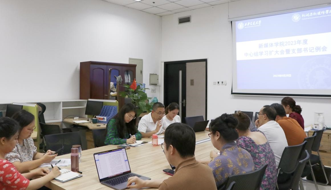 6月28日下午,新媒体学院党总支在主E409办公室召开理论学习中心组扩大会暨党支部书记工作例会。院长兼党总支书记马忠主持会议,中心组成员、系所主任和师生党支部书记参会。