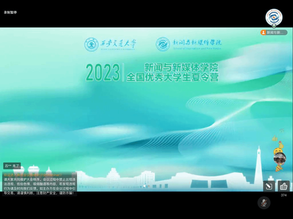 举办2023年优秀大学生夏令营暨“跨越·融合·创新”学科交叉特色夏令营。本次夏令营共收到来自全国126所高校的近500名优秀学子申报,经过认真审核,最终遴选出来自北京大学、武汉大学、南开大学、上海交通大大学、中国传媒大学、中央民族大学、厦门大学、兰州大学、四川大学、重庆大学等高校的120位优秀学子入营,相聚线上,共同体验学术魅力,结交学界挚友,构建学习网络,了解学院风采,畅谈理想未来。