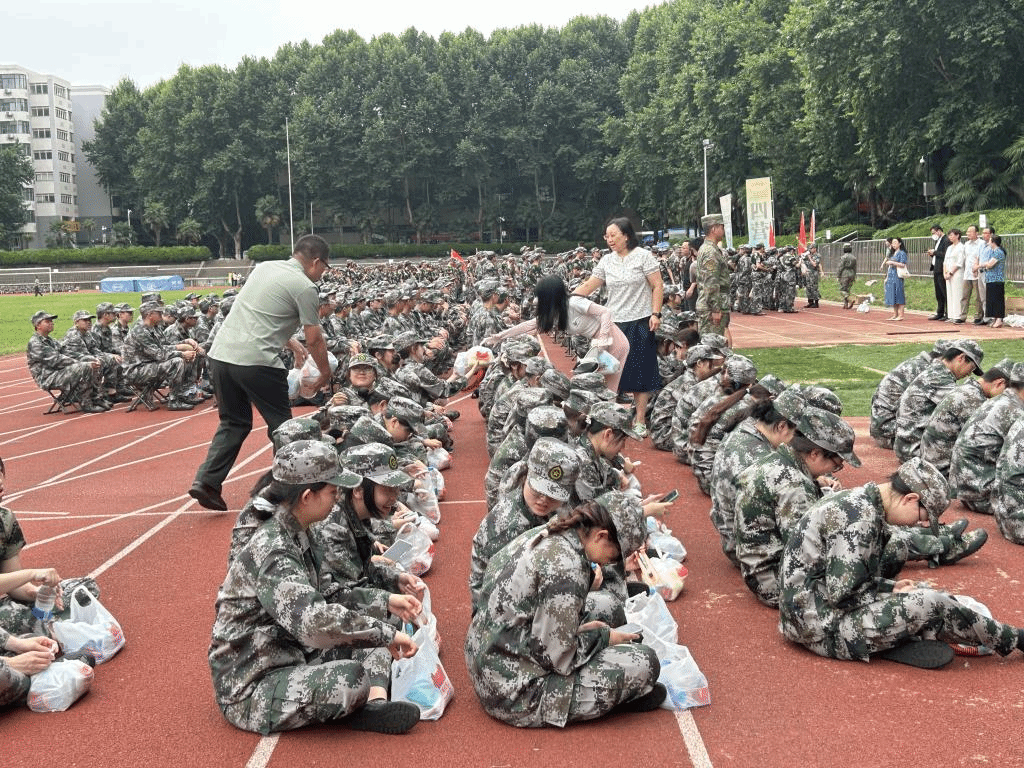 随后张立老师、张铁云老师向全体同学分发慰问品,发放过程中不忘鼓励同学们在军训中提升个人素质,在汗水中砥砺前行,在接下来的军训时间里经受住考验;并热情地就同学们提出的转专业、分流等学业问题进行交流,同学们也分享了军训期间的点点滴滴与所思所想。张铁云老师表示这些慰问品不仅是学院对同学们的呵护,更是对同学们优秀表现的认可与鼓励。