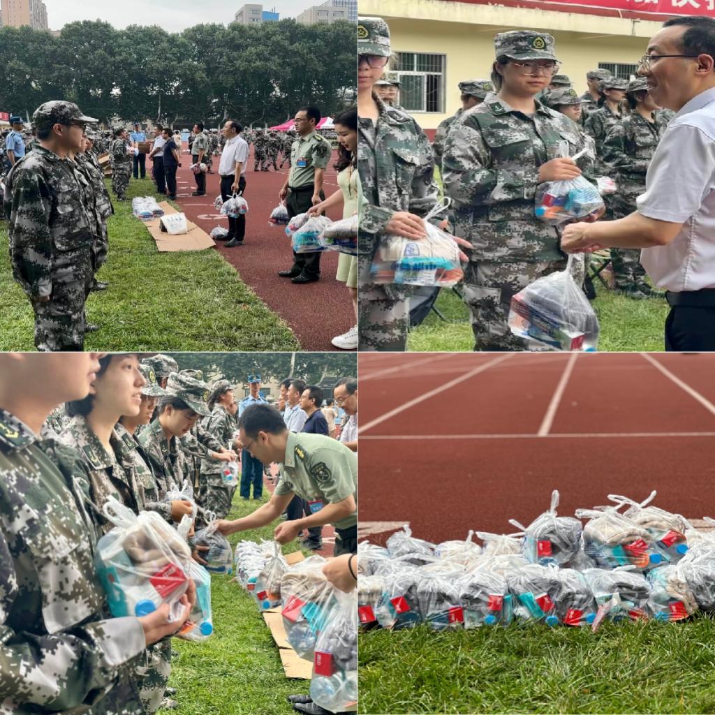 随后老师们向全体同学和教官递上了精心准备的慰问品,包括如毛巾、牙具、香皂等等,丰富且实用。这些礼物不仅代表着学院的关怀,更寄托了学院对同学们的诸多期许。
