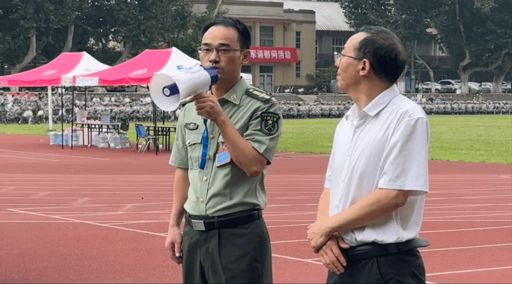 活力八月微风拂,青春激扬军训场。8月25日上午9点,新媒体学院在兴庆校区东田径场开展了军训慰问活动。学院副书记吴锋、教师代表申楠老师、本科生辅导员薛成、研究生辅导员李媛媛和班主任朱利平老师心怀热忱与关爱,给一线教官和2023级新媒体学子们送来了慰问品,也带来了学院满满的爱意与殷切的期望。