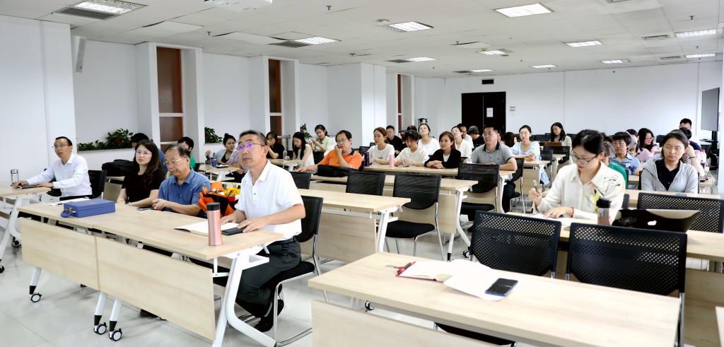 在兴庆校区主E1104会议室召开2023-2024学年第一学期秋季全体教工大会,传达学校务虚会精神,作年中总结和新学期工作规划,并举办教师节庆祝活动,全体教职工参加会议,院长助理、院办主任范晓莹主持会议。