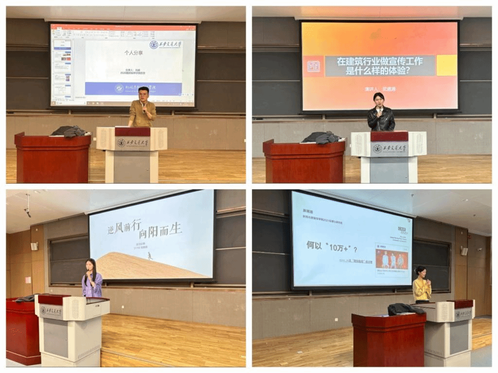 本学期开学以来先后邀请到隆基股份媒体运营负责人田野、硬科技媒体inKr传媒总编辑刘晓斌、知乎城市IP项目运营负责人龚继武、校友代表西北有色金属研究院刘威、中建五局西北公司高级业务经理武道源以及学生代表等进行了交流分享,将最新业界动态和实务操作技能以案例分析、经验传授和课堂互动的形式寓教于乐,在具有较高操作性和实用性的新媒体课程教学中碰撞出思维的火花。