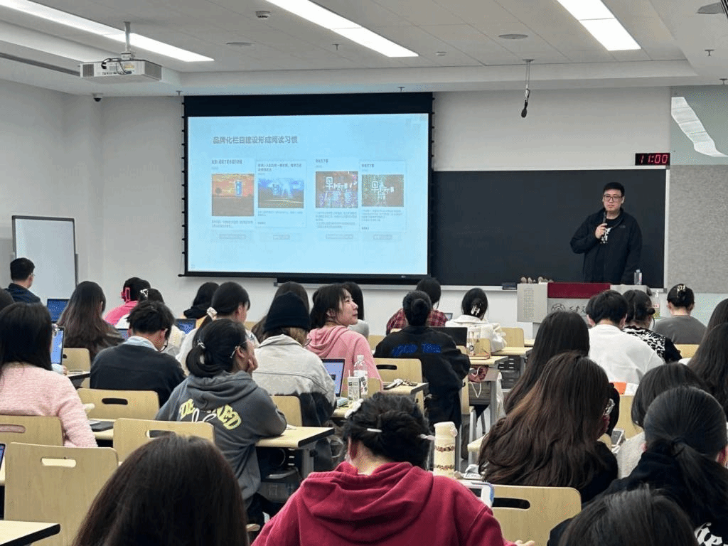 《新媒体运营》课堂上邀请到多位校友代表及学生代表做实践经验分享。校友刘威介绍了科研规划与工作规划两手抓的所见所感,并通过一个个专业问答的互动,讲述了自身对于新闻与传播专业发展势头的信心。优秀校友武道源从自身学习经历与“为什么去建筑行业做宣传?”“内、外宣传怎么做?”和“面对舆情怎么做”等部分分享了实操经验。博士研究生闫利超结合自身公众号运营经历,以公众号“只希望抵达有需要的用户节点”的用户定位开端,从“品牌效应”“不足转化”与”裂变传播”等方面传授运营经验。研究生三年级学生张婉柔分享了自己在人民日报社实习期间创作200余篇10万+文章的经验,并寄语同学“逆风前行,向阳而生”。研究生三年级学生麻婧岩以“何以‘十万’”为主题,结合自己10万+作品《我们从TFBOYS十年之约演唱会看到了什么?》同大家讲述了创作高流量优质作品的具体策略。