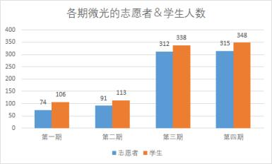 、南京大学、北京师范大学、西北工业大学、重庆大学、香港中文大学、莫纳什大学等几十所国内外高校的近千名志愿者,来自陕西、新疆、山西、河南、湖南等近20个省市地区的村镇学生上千人,四期志愿总工时超40000时。活动与四川仪陇、云南施甸、河南获嘉达成长期合作,为志愿者们化身“微光”,助力乡村振兴提供稳定平台。