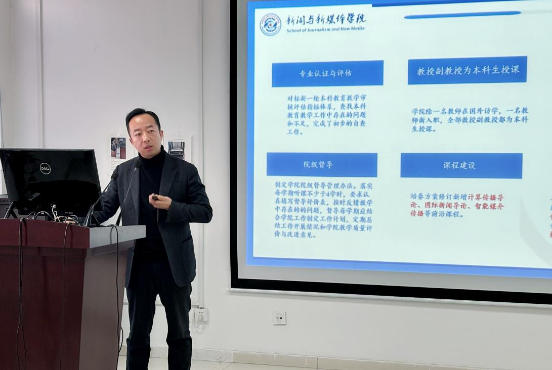 1月12日下午,新媒体学院在主E1104会议室组织召开2023年度工作总结暨领导班子及成员述职述廉大会。学院全体教工参会,院长兼党总支书记马忠主持会议。