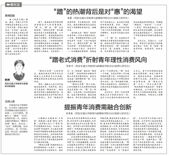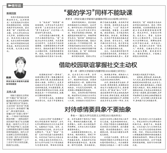 、清华大学、复旦大学六位学生,围绕“青年蹭老式消费”“大学恋爱课爆火”完成了两期热点话题的时评。