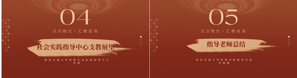 新媒体学院毕业生、志愿者以及村党支部志愿者三个身份的转变阐述了微光公益活动的社会价值,她说道:“我认为微光支教活动是十分有意义的,是润物细无声的。”优秀志愿者赵妮根据自己的支教经验进行分享,她认为微光支教活动是一次充实又难忘的人生旅行,是自我价值的体现,是社会责任感的升华,同时,它也是一种爱的传承。支教经历让她更加深刻的理解了教育的意义。活动创始人黄斌在毕业后成为了一名江苏名校优生公务员,他分享了自己的人生经历并对同学们寄语,强调了知识与眼界的重要性,希望同学们能够找到自己的理想,为之奋斗,珍惜这次难得的机会,用所学到的知识回报社会。自微光支教项目开始至今,每一位“微光人”都传递着志愿服务精神,以微茫造炬成阳。