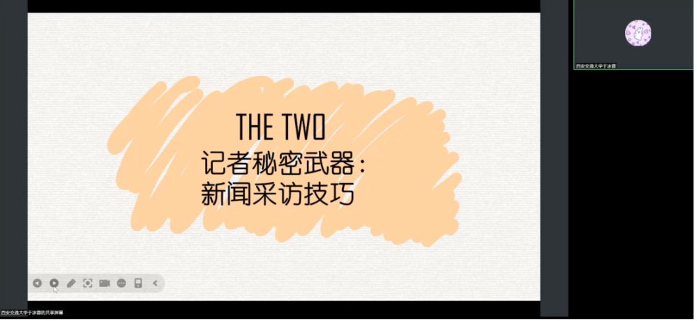 22级本科生于冰蓉为大家带来名为《小新闻,大笔触:记者养成记》的公益课程,通过介绍新闻基础知识,讲解新闻采访、写作技巧以及展示优秀新闻作品带领大家走进新闻世界。