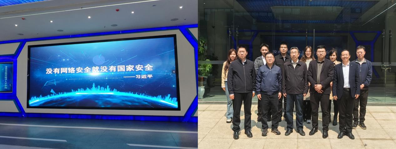 3月23日上午,联合调研组走进位于四川数安网信科技有限公司的四川省网信人才培养基地宜宾中心。宜宾市委网信办副主任罗建洪、数安公司总经理黄锦飞、培训部负责人郝宇光等陪同调研。