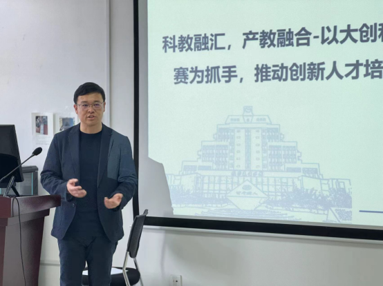 陈立斌作题为“科教融汇,产教融合——以大创和竞赛为抓手,推动创新人才培养”的专题讲座。以中国国际大学生创新大赛为引入,强调在新质生产力发展之下要重视创新作用于生产发展的重要意义,在往届金奖项目的画像深度剖析的基础上,结合新媒体专业作为典型新文科代表的学科特点,指导了如何进一步做好创新大赛的项目培育工作。此外,立足于科教融汇、产教融合的探索与实践的角度,对学校针对竞赛予以的支持保障,如何更好地开展新媒体学院可以主导管理的竞赛进行解读,在充分肯定了新媒体学院教育与竞赛成绩的同时,对学院系统化推动竞赛提出进一步建议与要求。