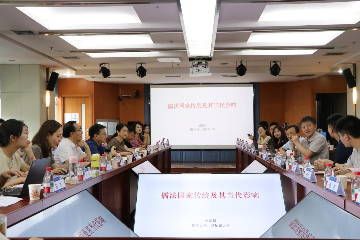 赵鼎新教授围绕“儒法国家传统及其当代影响”,从儒法国家在前现代中国的形成与发展、儒法国家与当代中国的关系、对四个“中国历史特性”的辨析三个方面深入分析了“儒法国家”这一理论命题在中国历史和现实中的演进与意义。与会师生围绕儒法传统、技术媒介对价值观传播的影响等议题展开热烈讨论。人文学院社会学系杨江华教授指出,赵鼎新教授的《儒法国家的诞生》对技术构造如何影响社会价值观的分析颇具启发意义,尤其在当前新媒体技术快速发展的背景下,更值得深入反思传播与技术结构之间的关系。新媒体学院马晓悦教授从传播学角度提出,主流价值观的建构不仅仅是内容的传递,更是叙事方式、结构环境与心理状态的互动过程,应高度重视微观传播与宏观制度之间的耦合机制。
