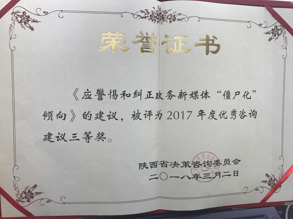 政务新媒体研究中心持续关注陕西省政务新媒体建设的重大理论和现实问题,开展课题研究和战略咨询,建言献策取得的新的可喜的成绩。