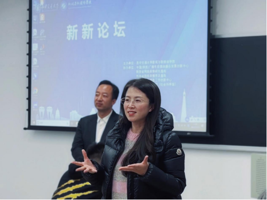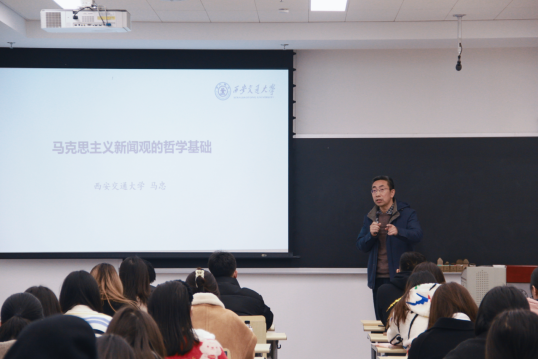 院长马忠教授作题为“马克思主义新闻观的哲学基础”的精彩汇报。讲座由学院副院长张宏邦教授主持,吸引了近百名师生现场学习。