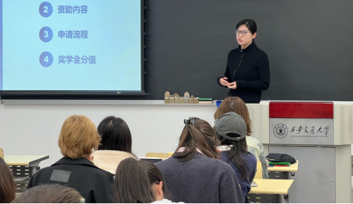 此外,国际交流发展中心工作人员兼学院外事秘书程雯老师对同学们关心的学校支持政策及出访注意事项进行了详细解读。她深入讲解了学校和学院针对学生参加国际学术会议的激励政策、资助申报流程,以及出入境管理和外事纪律等关键事项,为顺利出行、安心参会提供了全面的政策支持,消除了潜在的政策知识盲点,为顺利参与国际学术交流奠定了坚实的基础。