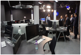 会谈结束后,在黄煜院长的陪同下,李院长一行参观了模拟演播室和新媒体实验室。