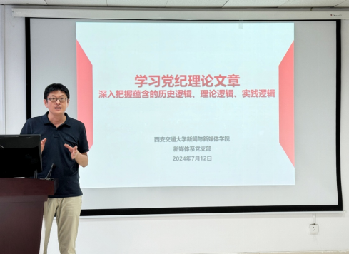 7月12日下午,新媒体系党支部举行了党纪理论文章专题学习活动,会议再次强调了党纪学习教育的重要性和紧迫性,要求全体党员深刻领会党中央的决策部署,将党纪学习教育融入日常工作和生活中。新媒体系党支部书记牛耀红主持会议,全系教师党员和博士生党员参加会议。