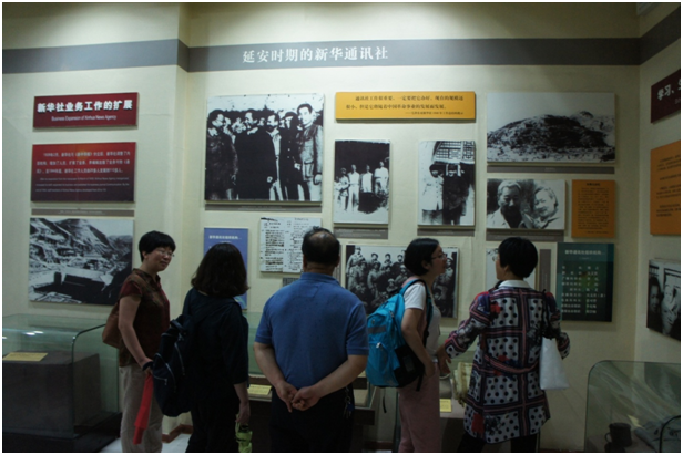 “百年积弱叹华夏,八载干戈仗延安。试问九州谁做主?万从瞩目清凉山”,陈毅将军曾赋诗如此称赞。清凉山不仅是新中国得以萌发的根据地,同时也是红色中国新闻出版事业诞生的摇篮,延安新闻纪念馆就坐落于清凉山下,记录了新中国新闻事业发展的艰难历程与取得的瞩目成就。作为传播学系的教师,我系党支部将参观延安新闻纪念馆作为此次“两学一做”考察之行的第一站,也是深切地期待通过回溯新中国新闻事业曾经的艰苦历程,不断地提醒各位党员教师,在新闻教学、实践中不忘初心,不忘方向。延安新闻纪念馆是由中宣部、广电总局、新华社、人民日报社、新闻出版总署等部门(单位)共同筹资修建而成,是全国唯一的新闻事业专题纪念馆。馆的外形是上下三层的窑洞形,寓意党的新闻事业是从延安的土窑洞里创建和发展起来的。