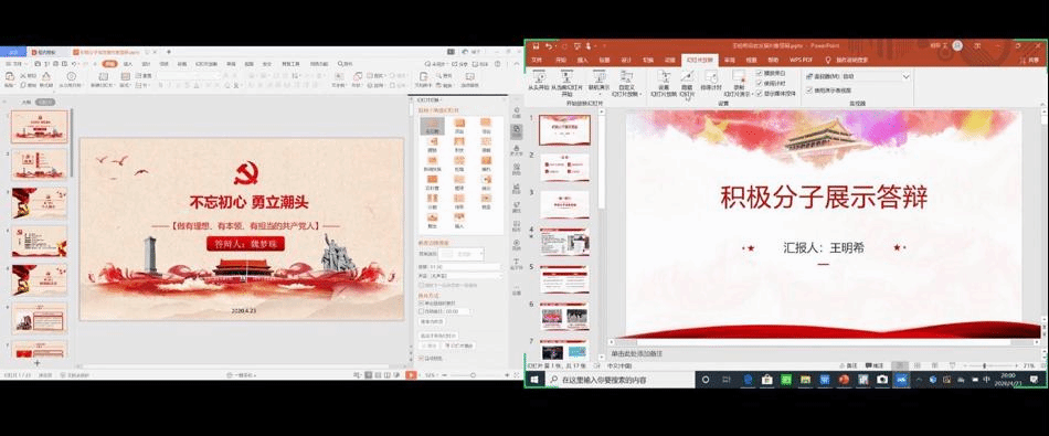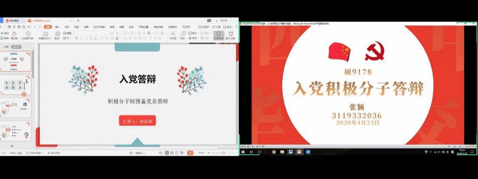 参与本次线上展示的入党积极分子共7人,分别是华昱、廖子千、张颖、王明希、林泳淇、魏梦珠及郭璇。按照陕西省发展党员工作规程,7名入党积极分子经过申请入党、入党积极分子一年以上的确定和培养教育,现进入发展对象的确定和考察阶段。此次答辩根据“全面考察、择优选取”的原则,严格遵循《新媒体学院2020年上半年积极分子成为发展对象答辩打分规则(定稿)》,按照50%的择优标准研究确定进入下一阶段的发展对象。