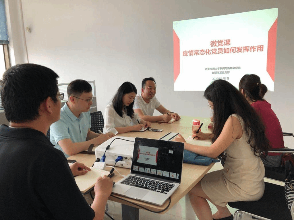 系主任马晓悦表示,疫情促使教师们正在逐步适应线上教学,如果能够做到综合利用、扬长避短,线上教学也可以为学生带来高质量学习效果。孙鹤立副院长指出,疫情期间,无论是教师还是学生,大家都积极配合线上教学工作,体现了交大人精勤求学的精神。杨帆谈到,疫情带来的不便反向推动了新媒体的应用,也为网络新媒体发展提供了机会。霍斐谈到,教师们克服种种困难、坚持高质量完成教学任务的精神让人鼓舞,在今后教学工作中一定努力上好每一堂课。