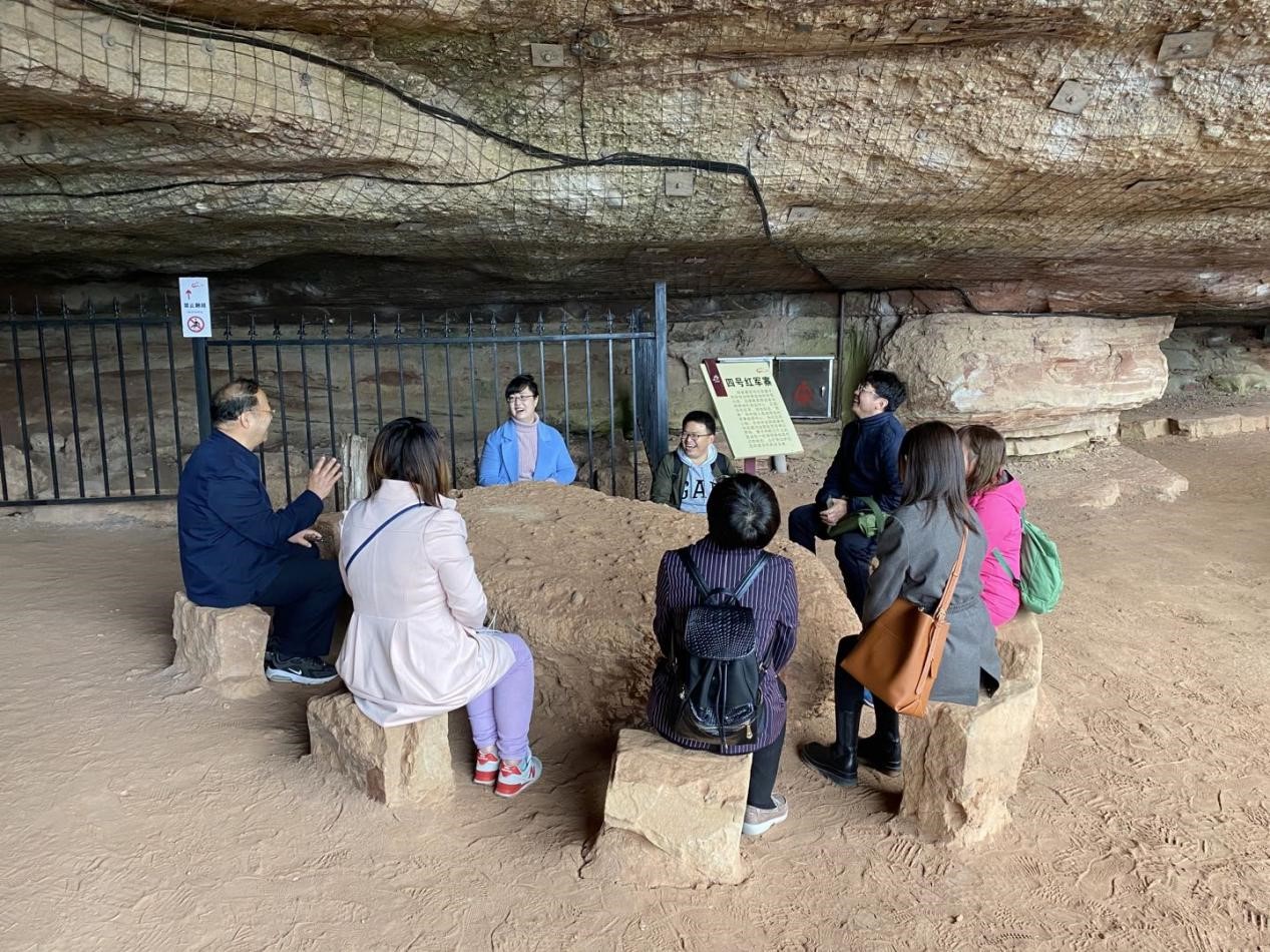 11日下午,研究班奔赴薛家寨革命旧址,深刻了解了陕甘边核心机构迁驻后,利用天险改造山寨、修筑工事,坚强领导照金苏区进行游击战和“反围剿”斗争的伟大历程。薛家寨以雄险著称,老师们在石峰千仞的山道冒雨前进,身临其境感受了当年红军依险峻山势增筑碉堡、安营扎寨的艰辛,更被革命先烈不怕牺牲、艰苦创业的精神所折服和感动。