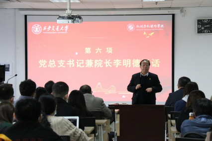 计票期间,党总支书记兼院长李明德讲话。他强调,党员同志需始终牢记党的“理论联系实际、密切联系群众、批评和自我批评”三大作风并践行于行,充分发挥党员的先锋模范作用。李明德从科研工作、教学、队伍建设和学生学习四个方面阐述了新媒体学院2021年以来取得的突出成果,并对为学院点点滴滴进步而付出努力的党员同志们表示感谢。他表示,学院会尽力给大家创造成才机会,希望老师和同学们积极参与进来,为学院的发展凝心聚力。