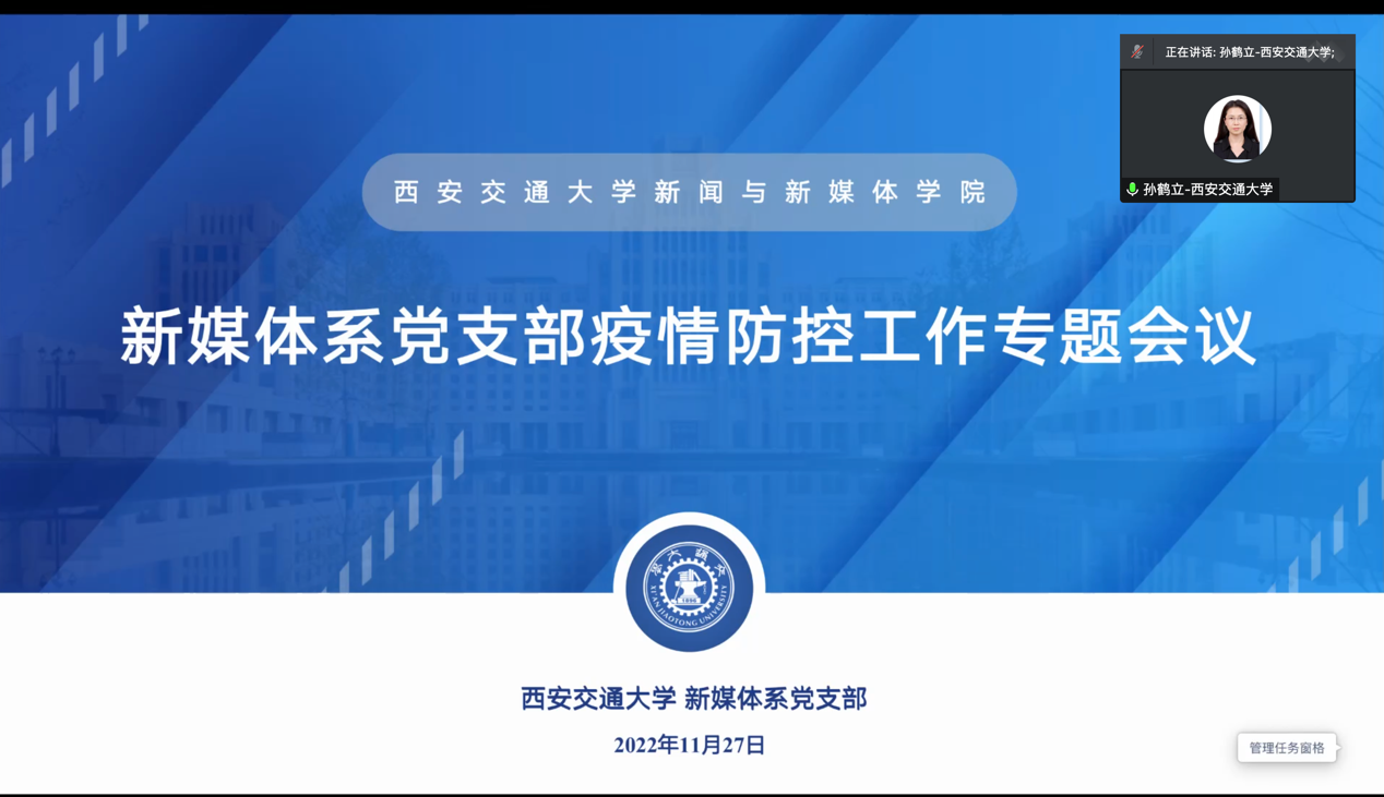 11月27日晚,新媒体系党支部线召开疫情防控工作专题会议,新媒体系全体教师、博士生参加会议会议由支部书记牛耀红主持。