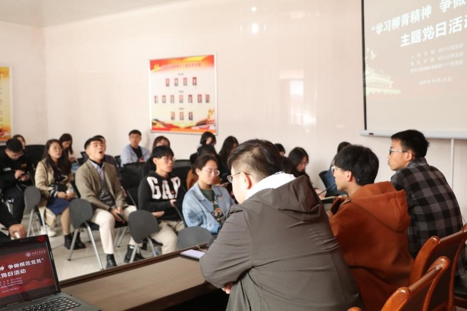人居学院的闫伟超同志回顾了柳青的生平,他提出:“学生党员应发扬西迁精神,心系同学、心系群众,要与同学们保持交流沟通,从群众中来,到群众中去,努力做好自己的工作,真正担负起肩上的使命。”