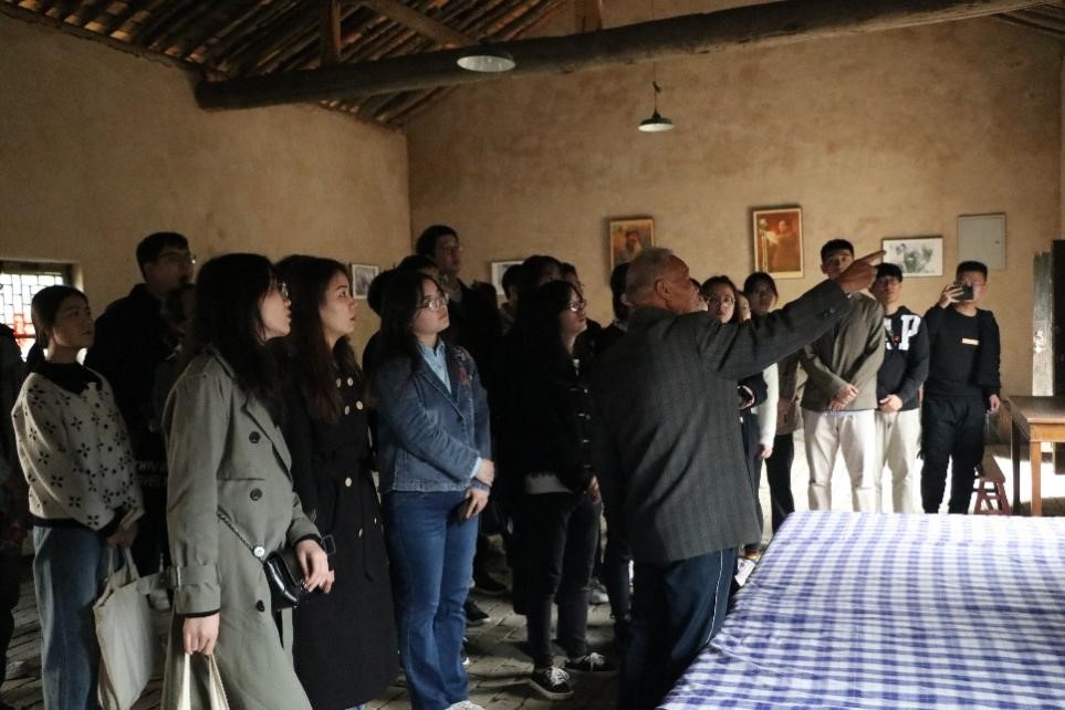 缅怀仪式过后,大家来到柳青故居,听《创业史》中才娃原型人物刘田民老人讲柳青的故事。刘田民老人为柳青守墓已达20年之久,提到“柳青伯”,他眼眶泛着泪光,充满着对柳青同志的感恩怀念之情。通过刘田民老人滔滔不绝的讲述,一个丰富立体的柳青形象屹立在我们眼前。他才华洋溢,涉猎广泛,将艺术诗情与公民性完美相融,写作《创业史》、《铜墙铁壁》等多部现实主义作品。他心怀人民,将16065元稿费捐给公社,总结《耕畜饲养三字经》,解决群众的温饱问题,提升皇甫村生活水平。他心志坚定,在皇甫村落户长达14年,与人民群众同呼吸、共命运,以实际行动践行共产党员的初心和使命。