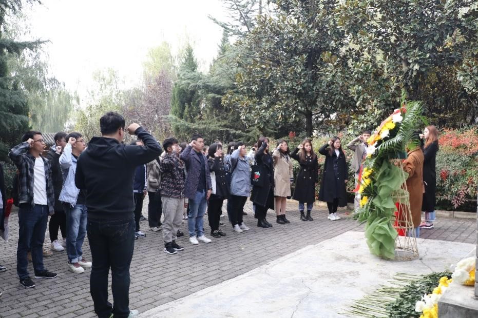 全体党员怀着无比崇敬的心情,来到神禾塬畔的柳青墓园,举行庄严肃穆的缅怀仪式。首先,人居学院硕9152党支部徐达同志介绍了柳青同志简要事迹,称柳青的一生,是毛主席《在延安文艺座谈会上的讲话》中“有出息”作家的实践者楷模,是习近平总书记《在文艺工作座谈会上的讲话》中“为人民抒怀”作家期盼的楷模。而后,党支部代表在柳青墓前献上花篮,全体党员同志依次献上菊花,黄白相间的花朵有序点缀着整齐的青砖石板,映衬着柳青同志高尚无私的品格。在电信学部硕9060党支部苗鸿易同志带领下,全体党员同志重温入党誓词。