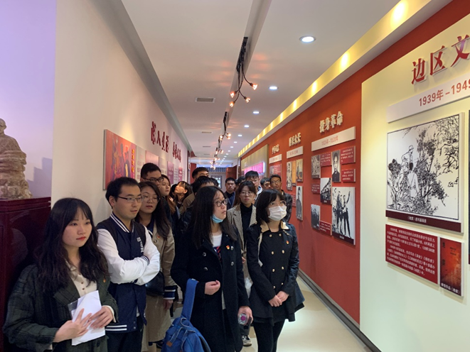 柳青文学馆位于柳青广场中央,是全体党员同志了解柳青精神的第一站。文学馆端正雅致,红色文化氛围浓厚,馆内陈设柳青故事、柳青名言、各界评价等16个板块,分布在长廊两侧的红色主基调墙面上。在讲解员的带领下,全体党员对柳青同志的人物生平和创作历程有了基本了解,仿佛亲历了柳青扎根人民、无私奉献的时光。