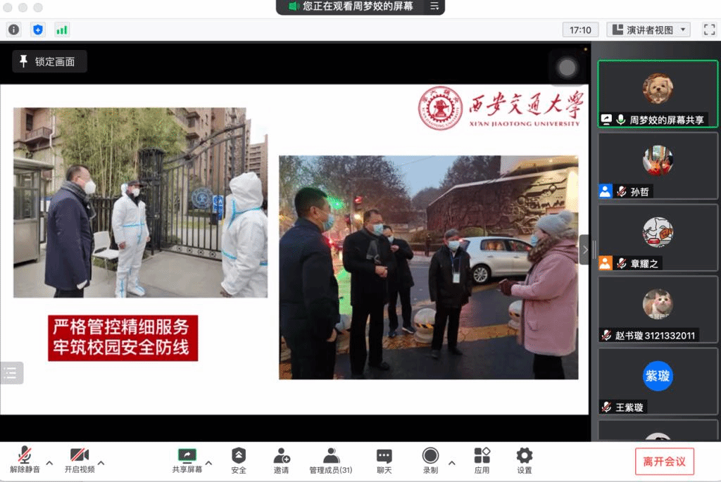 周梦姣同学还在宣讲中提到了交大人在抗击疫情前线的热忱担当,考研前夕,党委书记卢建军、校长王树国亲自前往工作点督导各个考点工作有序进行,切实把守护师生生命健康放在首位,坚决扛起疫情防控政治责任,落实落细各项服务保障,筑牢校园安全坚固防线。交大的同学们也纷纷响应学校号召,积极投入到“携手抗疫、护送‘研’途”的保卫战中,他们每日5点50分上岗,负责秩序维持、路线引导、核酸检测引导、为考务人员送餐等工作,他们以暖心、贴心、温馨的服务,彰显了交大学子的青春风采和力量。