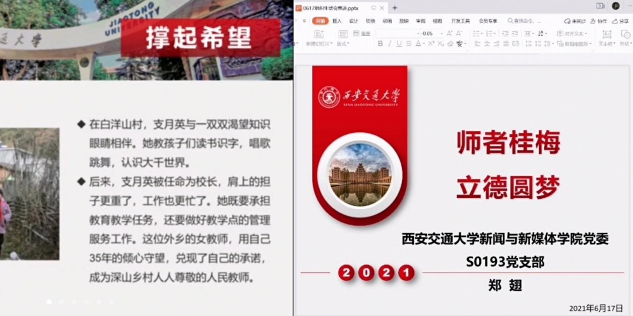 硕0193党支部联合上海外国语大学英语学院研究生第十五党支部,以“党支部经验交流暨学习感动中国人物之支教党员事迹”为主题开展支部共建活动。