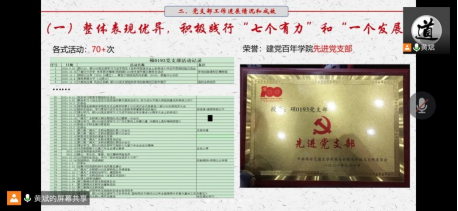 总结支部年度工作,扎实推进支部整体建设。黄斌针对党支部2021年度工作进行述职汇报。他表示,2021年以来支部在教育管理监督党员、组织宣传凝聚师生等多个方面持续发力,累计举办各项活动70余次,发送新闻稿件140余篇,创办“微光”线上支教活动并累计举办3期,获得了“建党百年学院先进党支部”的荣誉。