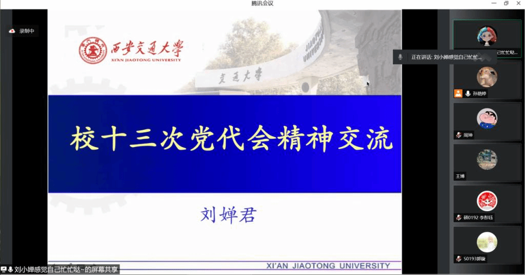 第十三次代表大会通过的题为《胸怀国之大者弘扬西迁精神勇担国家使命共创交大荣誉为加快建设中国特色世界一流大学而努力奋斗》的报告,新媒体学院面向学生支部开展学校第十三次党代会精神专题学习会,邀请传播学系党支部书记刘婵君副教授为同学们传达报告精神。