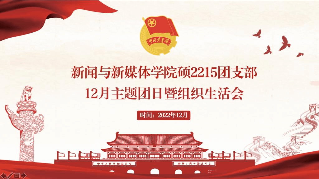 本次会议在嘹亮的团歌声中拉开帷幕。学院团组织副书记孙艳婷结合自身经历分享了党的二十大报告学习感悟,带领大家回顾了党的二十大报告内容,鼓励大家积极参与元研会发布的党的二十大主题征文活动。她着重与同学们分享了她从二十大报告中感悟到的党的宣传工作启示,认为作为新传学子提升自我,要做中国文化的传播者、中国故事的传送者、中国精神的传承者,在人格上追求不断成熟,在实践上追求不断深入。