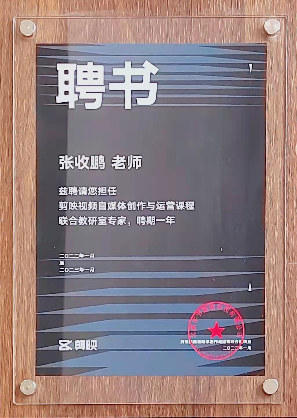 成为字节跳动-剪映《视频自媒体创作与运营》课程共建院校,张收鹏老师受聘为字节跳动-剪映视频自媒体创作与运营课程联合教研室专家。