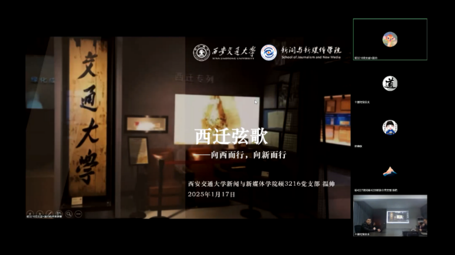 新媒体学院硕3216党支部温帅以“西迁弦歌——向西而行,向新而行”为主题带领学习西迁精神。她从西迁教授们的生动事迹入手,回顾了交大为国家建设拼搏的历史,并指出新时代西迁精神正焕发出新的生机,激励交大人不断前行,积极投身国家建设。
