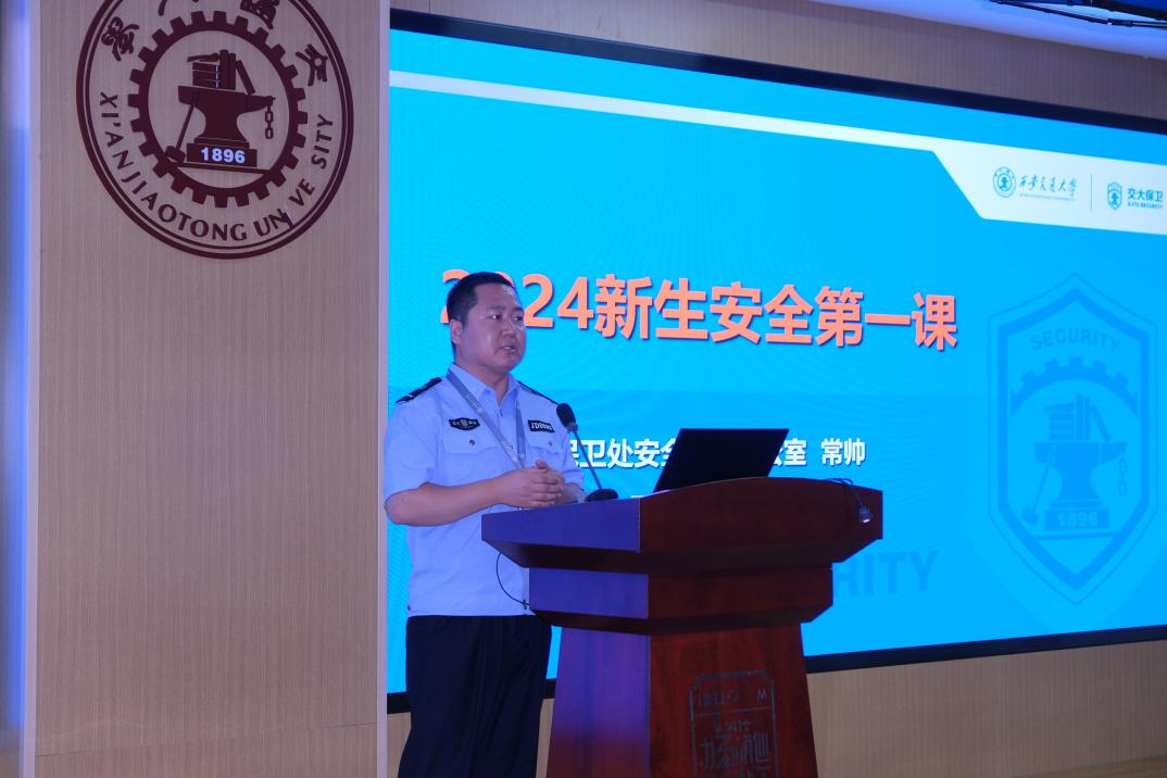 随后,常帅老师以“喜迎新生•安全先行——2024级新生安全专题教育”为题开展新生教育。他结合现实案例,通过“防范诈骗”“交通出行”“消防安全”“言论与谣言”四个部分,为同学们讲述了日常生活当中可能存在的安全隐患以及应对方法。随后又特别针对创新港校区的交通特点进行了详细分析,叮嘱同学们注意出行安全,做好自己安全的第一责任人。