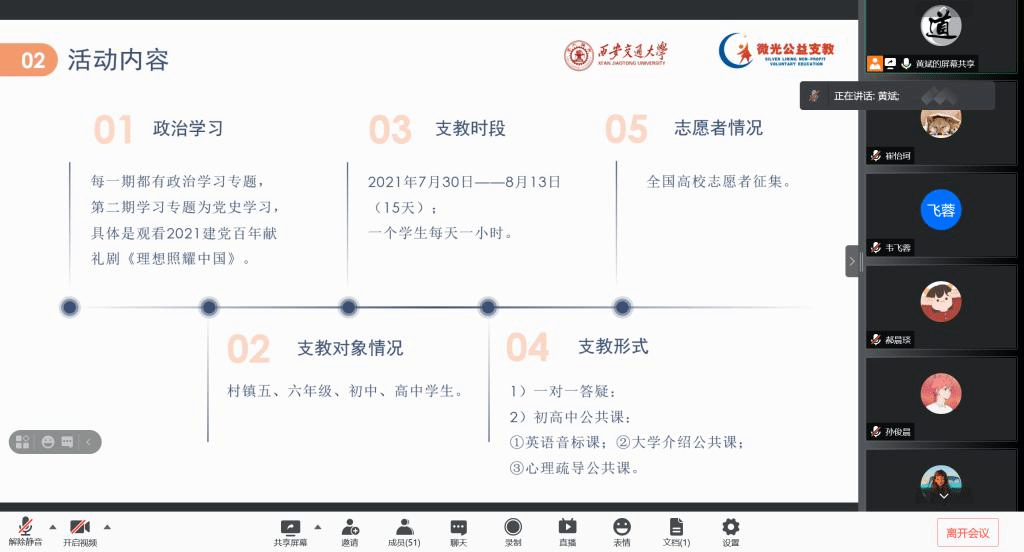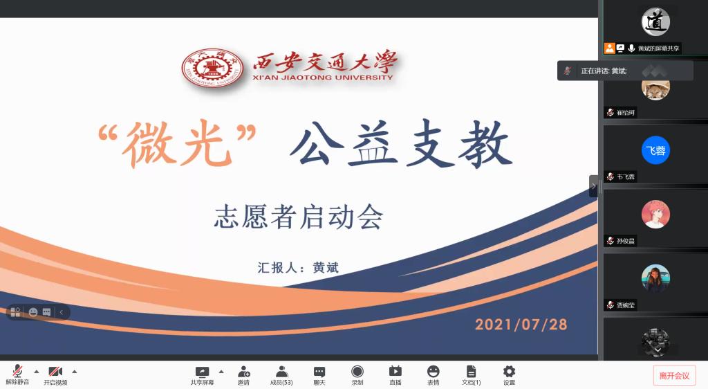 2021年7月底,第二期“微光”公益线上支教活动在志愿者启动会和学生启动会中正式开启。