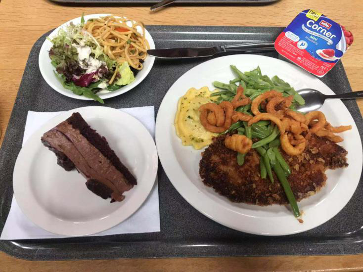 在饮食方面,周内上课时间我们就在玛格丽特夫人学院的学院食堂用餐,食堂菜品种类很多,每天都有当日的新食谱。所以,到英国之前听说的英国只有炸鱼薯条,其他食物“难以下咽”的谣言就不攻自破了。但是,因为口味差异,总会有一些食物不合“中国胃”的偏好,这时同学们自己带的“老干妈”辣椒酱也被亲切地调侃为“老亲妈”。当然,在周末我们还可以到牛津和伦敦的去品尝其他的英国菜、法国菜、泰国菜,甚至还有机会去中国餐厅打个牙祭。