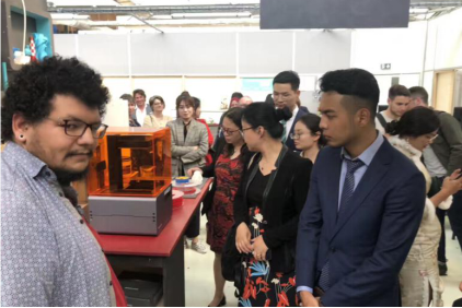 随后我们在法方的带领下来到了法国著名的创业孵化器——MAME创新创业城。这里本是一家旧的印刷厂厂房,后被法国图尔市政府收购,投资改造城现在的创新创业基地。MAME现在是一个致力于数字化创建和聚集的平台,也是当地法国科技生态的重要组成部分。在参观中我了解到创业中心的各个团队平均年龄只有30岁左右,很多创业伙伴也还在读书。在和一名法国当地学生的交流中我了解到,法国教育除学术教育之外也有很大一部分专注于应用,比如学习团队管理或者技术应用相关的知识,进而减少从学生向社会从业者的心理和能力过渡期。