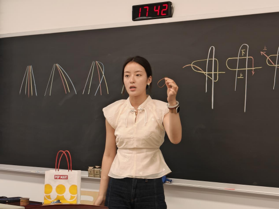 编五彩绳是端午节的传统习俗之一。五彩绳,又称五彩丝,寓意祈福辟邪。五彩绳编织环节中,为同学们准备了五种颜色的丝线,表达对于吉祥的祝愿。编织五彩绳看似简单,实则需要一定技巧。同学们在负责人的指导下,整理丝线并开始编织。复杂的方法让起步有些困难,但是通过互相帮助和学习,同学们慢慢掌握了技巧。在欢笑和交谈中,一根根漂亮的五彩绳在同学们手中编制而成。